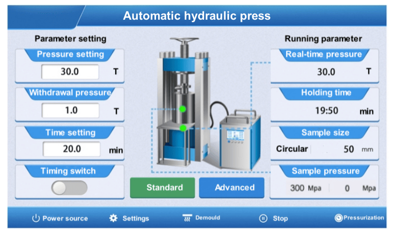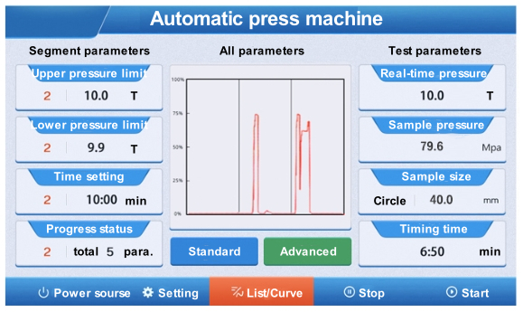 อินเทอร์เฟซมาตรฐาน:สามารถตั้งค่าพารามิเตอร์ต่างๆ เช่น แรงดันการถอดแม่พิมพ์ เวลา ขนาดตัวอย่าง ฯลฯ แยกกันได้บนอินเทอร์เฟซนี้