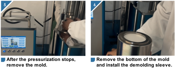 ปุ่ม ถอดแม่พิมพ์:กดปุ่มถอดแม่พิมพ์เพื่อปล่อยตัวอย่างตามแรงกดในการถอดแม่พิมพ์