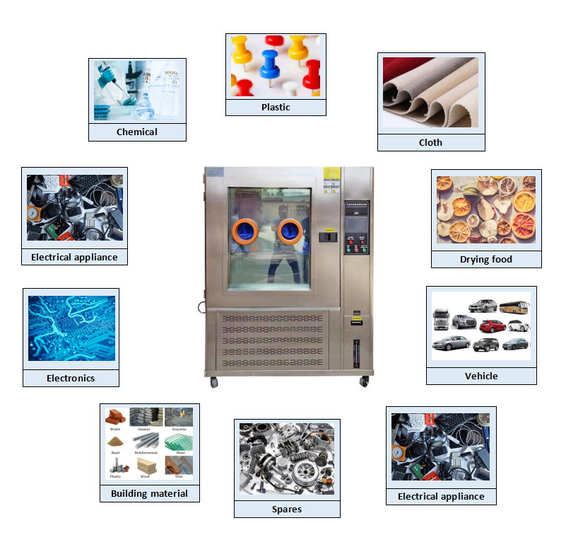 ห้องทดสอบอุณหภูมิและความชื้นสามารถจำลองสภาพแวดล้อมทางธรรมชาติที่ซับซ้อนของอุณหภูมิต่ำ อุณหภูมิสูง ความชื้นสูง อุณหภูมิต่ำ และความชื้นต่ำได้อย่างแม่นยำ ซึ่งเหมาะสำหรับการตรวจจับผลิตภัณฑ์พลาสติก อุปกรณ์อิเล็กทรอนิกส์ อาหาร เสื้อผ้า ยานพาหนะ โลหะ สารเคมี วัสดุก่อสร้าง และอุตสาหกรรมอื่นๆ