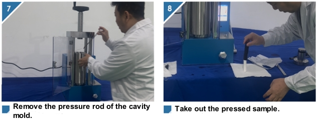 ขนาดตัวอย่าง:ตั้งค่ารูปร่างและขนาดของตัวอย่าง อุปกรณ์จะคำนวณแรงดันของตัวอย่างโดยอัตโนมัติตามขนาดที่คุณตั้งค่า เพื่อไม่ให้เกิดแรงดันเกิน