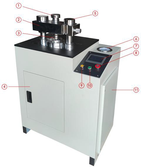 5. คอลัมน์ | 6. เกจวัดแรงดัน | 7.หน้าจอสัมผัส | 8.ปุ่มหยุดฉุกเฉิน |