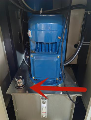 วางอุปกรณ์ในแนวนอนบนพื้นดินที่มั่นคงและเรียบ เปิดประตูด้านข้างของเครื่อง และเติมน้ำมันไฮดรอลิกหมายเลข 46 ลงในมาตรวัดระดับน้ำมัน 2/3 (น้ำมันไฮดรอลิกของลูกค้าเอง)