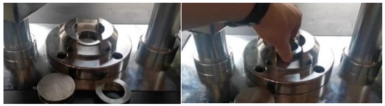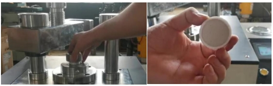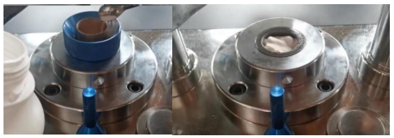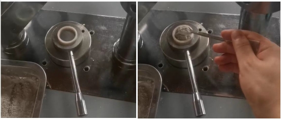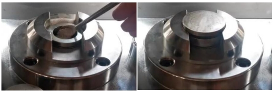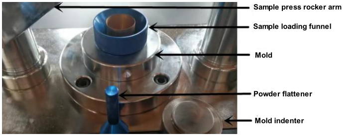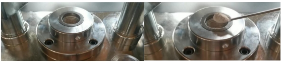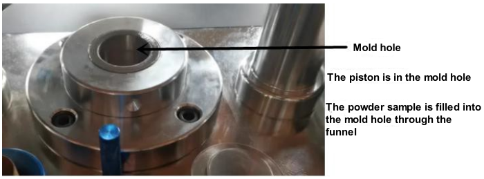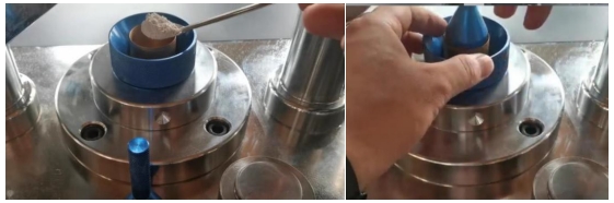 2. ดันคานออก ขันกรวยใส่ตัวอย่างเข้าไปในรูของแม่พิมพ์ ใช้ช้อนเติมตัวอย่างผงลงในรูตรงกลางของกรวย ปริมาณการโหลดโดยทั่วไปจะอยู่ที่ประมาณ 5 กรัม และสามารถปรับได้ตามสถานการณ์จริงของปริมาณการโหลด