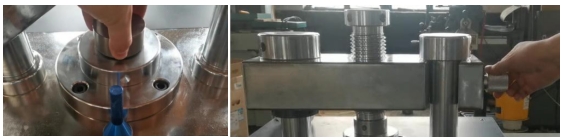 3. ตรวจสอบว่าคานปิดสนิทก่อนกดตัวอย่าง หลังจากปิดคานแล้ว ให้แน่ใจว่าส่วนเว้าของคานติดแน่นกับหัวนูนของคอลัมน์ ใส่หัวกดแม่พิมพ์ลงในแม่พิมพ์อย่างถูกต้อง และขันสกรูเข้ากับหัวกดแม่พิมพ์ก่อนเริ่มกดตัวอย่าง