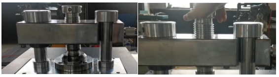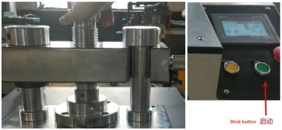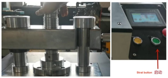 เปิดเบรกเกอร์วงจร จ่ายไฟให้กับอุปกรณ์ เปิดเครื่องกด ดันคาน ถอดหัวกดแม่พิมพ์ กดปุ่มปล่อยเพื่อตรวจสอบว่าลูกสูบยกขึ้นหรือไม่ หากยกขึ้น แสดงว่าการทดสอบมอเตอร์เป็นปกติ หากไม่เป็นเช่นนั้น ให้ปิดเบรกเกอร์วงจรสามเฟส และปรับสายสามเฟสใด ๆ สองเส้นก่อนทำการทดสอบ