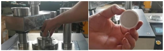 เครื่อง กดตัวอย่างส่วนใหญ่ใช้ในเครื่องสเปกโตรมิเตอร์เรืองแสงในการทำตัวอย่างของแข็งและการขึ้นรูปเม็ดผงขนาดเล็กต่างๆ ใช้กันอย่างแพร่หลายในโลหะผง ซีเมนต์ ขยะแข็ง ตัวเร่งปฏิกิริยา กรดไฮโดรคลอริกซิลิโคน แบตเตอรี่ เซรามิก และมหาวิทยาลัยและวิทยาลัยและสาขาอื่นๆ ของการวิเคราะห์องค์ประกอบของผงจะถูกกดลงในตัวอย่างสำหรับเครื่องสเปกโตรมิเตอร์เรืองแสงวิทยุ XRF และเครื่องสเปกโตรมิเตอร์อินฟราเรดเพื่อจัดทำตัวอย่างของผลิตภัณฑ์