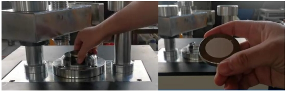 3. หลังจากโหลดตัวอย่างแล้ว ให้ใช้อุปกรณ์กดเพื่อกดตัวอย่างให้แบน