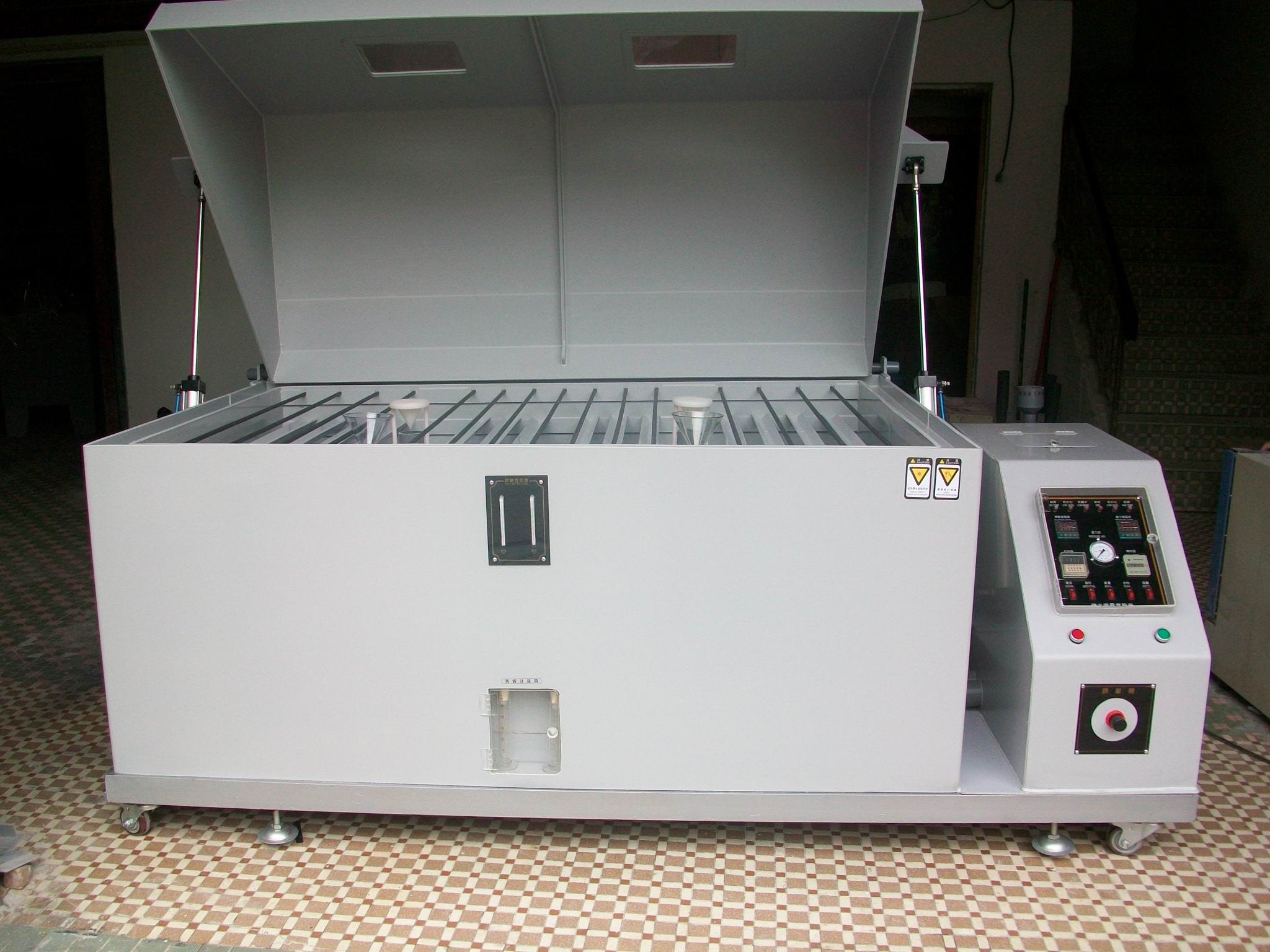 ระบบกำจัดหมอก | เมื่อเครื่องหยุดทำงาน ให้ทำความสะอาดสเปรย์เกลือภายในห้องทดสอบเพื่อป้องกันไม่ให้ก๊าซกัดกร่อนไหลออกมาและทำให้เครื่องมือความแม่นยำอื่นๆ เสียหาย |