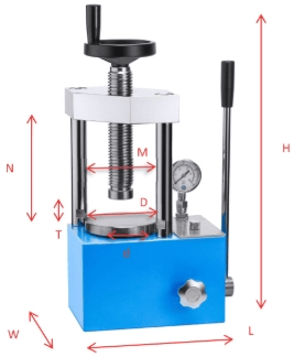แผนผังแสดงขนาดของเครื่องอัด ผง |
