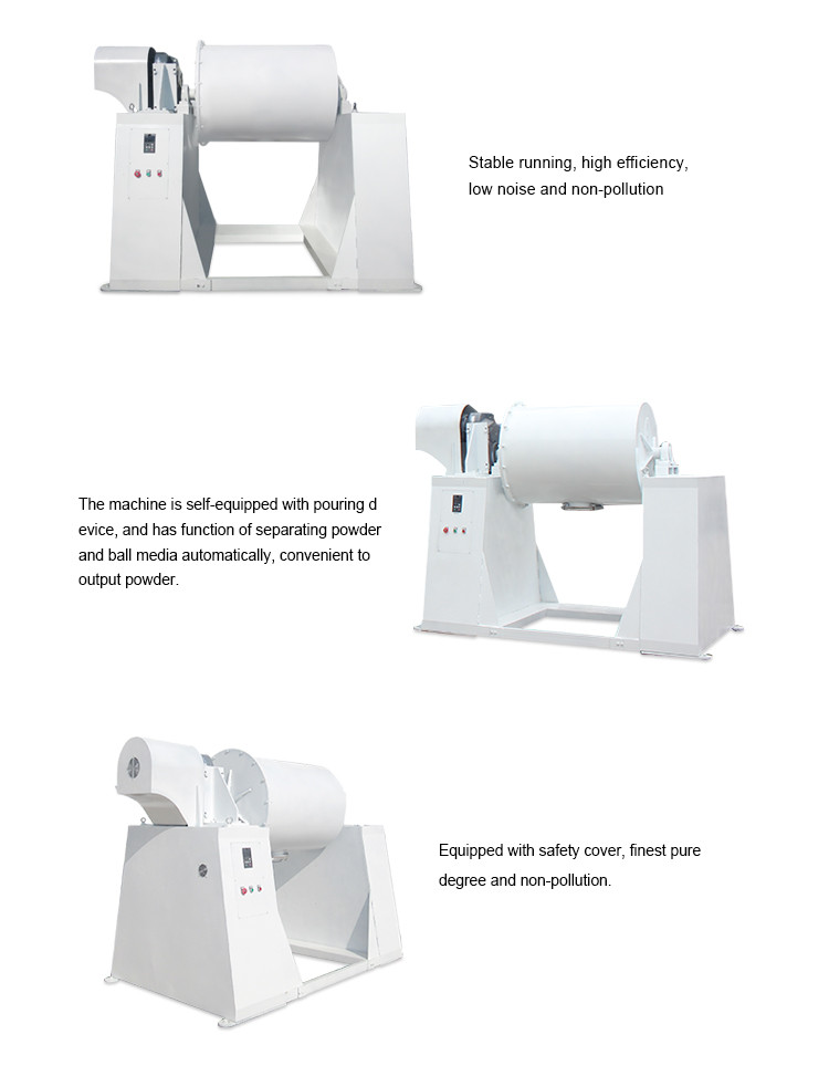 : เครื่องนี้ใช้การออกแบบความเร็วในการหมุนที่เหมาะสมที่สุด โดยโถบดจะถูกลากให้หมุนด้วยลูกกลิ้งยาง ลูกบอลภายในโถจะเคลื่อนที่ในแนวเอียงและกระจายวัสดุ ทำให้ได้ผลลัพธ์ที่ดีที่สุดในการบด ส่งผลให้วัสดุถูกบดละเอียดเป็นผงละเอียดระดับไมครอน ตัวเครื่องมีแผงควบคุมการตั้งเวลาพร้อมฟังก์ชันควบคุมการหยุดชั่วคราวและการตั้งเวลาสะสม คุณสามารถตั้งเวลาการทำงานได้ตามต้องการ ช่วยประหยัดเวลาและแรงงาน และใช้งานง่าย