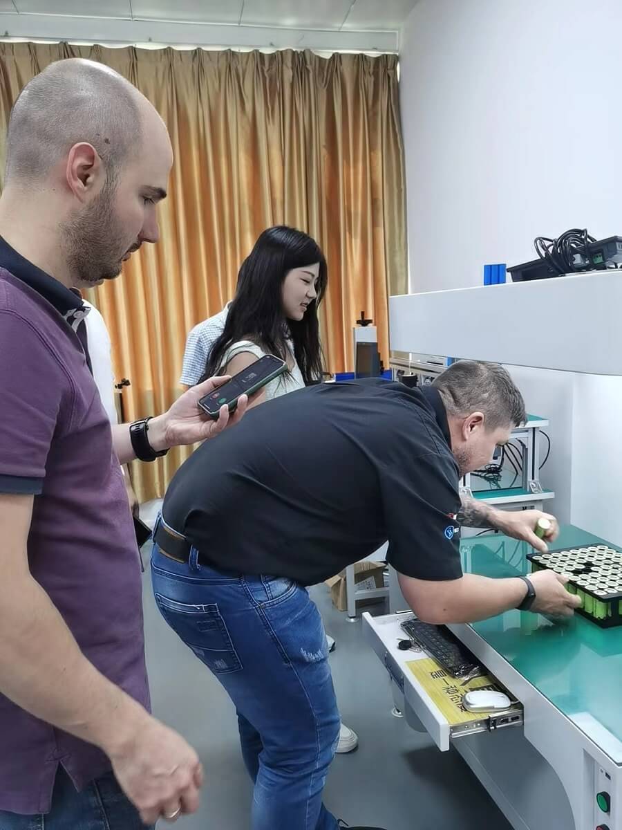 หลังจากนั้น เราได้นำลูกค้าเยี่ยมชมสายการประกอบแบตเตอรี่ของโรงงานของเรา