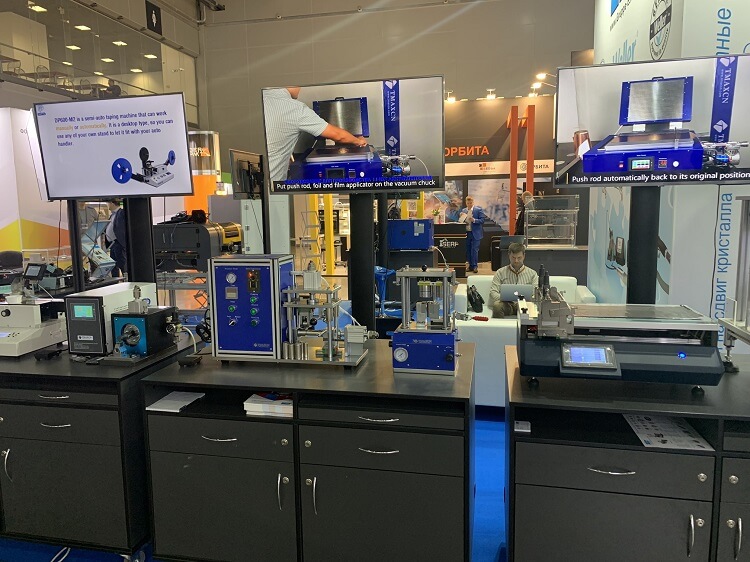 เมื่อเร็วๆ นี้ บริษัทตัวแทนของเราในรัสเซีย “ООО "ЭСТ-СМТ" / Ltd. "EST-SMT" ได้เข้าร่วมงานนิทรรศการ “Electron Expo 2022” ที่กรุงมอสโก ระหว่างวันที่ 12-14 เมษายน โดยได้จัดแสดงเครื่องจักร TMAX บางส่วน อาทิ เครื่องเชื่อมจุดด้วยคลื่นอัลตรา โซนิ ก เครื่องเซาะร่องเซลล์ทรงกระบอก เครื่อง จีบเซลล์ทรงกระบอกแบบใช้มือเครื่องเคลือบฟิล์ม /บาร์แล็บ และอื่นๆ ซึ่งได้รับความนิยมจากผู้เข้าชมงานเป็นอย่างมาก