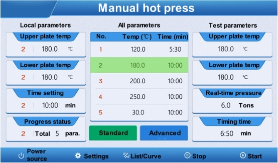 อินเทอร์เฟซมาตรฐาน: อุณหภูมิความร้อนและเวลาอุณหภูมิคงที่ของแผ่นด้านบนและด้านล่างสามารถตั้งค่าแยกกันบนอินเทอร์เฟซได้