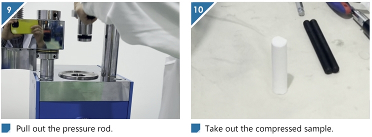 ปุ่ม ถอดแม่พิมพ์:กดปุ่มถอดแม่พิมพ์เพื่อปล่อยตัวอย่างตามแรงกดในการถอดแม่พิมพ์