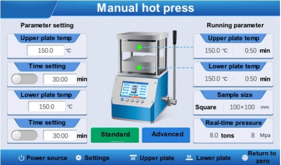 อินเทอร์เฟซมาตรฐาน: อุณหภูมิความร้อนและเวลาอุณหภูมิคงที่ของแผ่นด้านบนและด้านล่างสามารถตั้งค่าแยกกันบนอินเทอร์เฟซได้