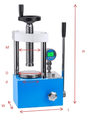 แผนผังแสดงขนาดของเครื่องอัด ผง |