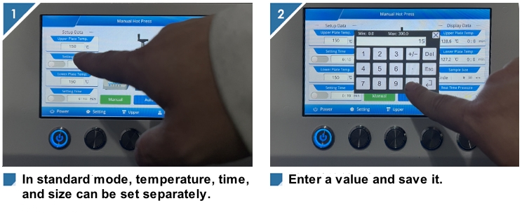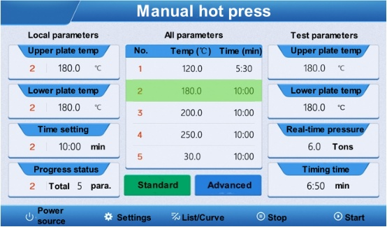 อินเทอร์เฟซมาตรฐาน:อุณหภูมิความร้อนและเวลาอุณหภูมิคงที่ของแผ่นด้านบนและด้านล่างสามารถตั้งค่าแยกกันบนอินเทอร์เฟซได้