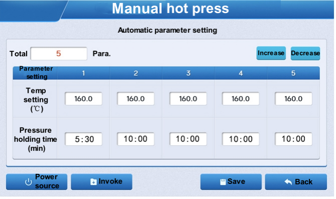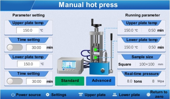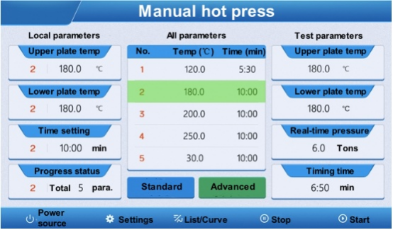 อินเทอร์เฟซมาตรฐาน:อุณหภูมิความร้อนและเวลาอุณหภูมิคงที่ของแผ่นด้านบนและด้านล่างสามารถตั้งค่าแยกกันบนอินเทอร์เฟซได้