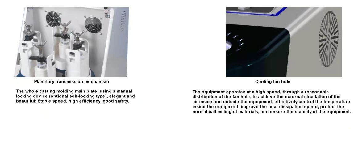 เครื่องบดแบบดาวเคราะห์เป็นอุปกรณ์ที่ขาดไม่ได้สำหรับการผสมวัสดุขั้นสูง การบดละเอียด การเตรียมตัวอย่าง การกระจายตัวของวัสดุนาโน การพัฒนาผลิตภัณฑ์ใหม่ และการผลิตแบบกลุ่มเล็ก ผลิตภัณฑ์มีขนาดเล็ก ฟังก์ชันครบครัน และประสิทธิภาพสูง เหมาะอย่างยิ่งสำหรับสถาบันวิจัยวิทยาศาสตร์ มหาวิทยาลัย และห้องปฏิบัติการระดับองค์กรในการเก็บตัวอย่างวิจัยอนุภาค (แต่ละการทดลองสามารถเก็บตัวอย่างได้ 4 ตัวอย่างพร้อมกัน) โดยการบดตัวอย่างภายใต้สุญญากาศ
