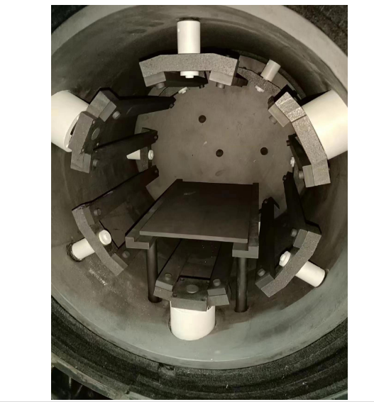 ตัวเตาเผา | ใช้โครงสร้างสองชั้นที่เชื่อมต่อกันด้วยน้ำชั้นในทำจากสแตนเลส 304 และชั้นนอกทำจากเหล็กกล้าคาร์บอนพ่นด้วยไฟฟ้าสถิต ระนาบหน้าแปลนมีร่องปิดผนึก ใช้วงแหวน "O" สำหรับการปิดผนึกสูญญากาศ และติดตั้งอุปกรณ์ระบายความร้อนด้วยน้ำ (เพื่อป้องกันไม่ให้วงแหวน "O" เสื่อมสภาพเนื่องจากอุณหภูมิสูงเกินไป) มีช่องระบายอากาศ ช่องรับอากาศ และรูเทอร์โมคัปเปิล ฯลฯ | |