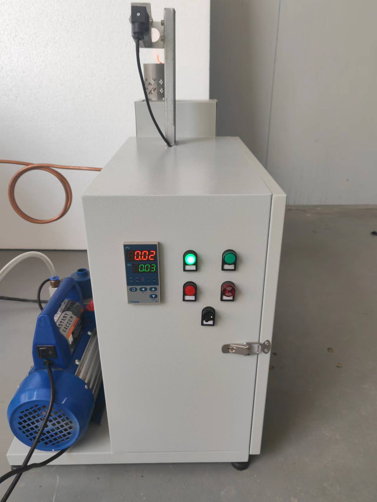 การควบคุมก๊าซ | ช่องรับอากาศสามารถตั้งค่าช่องรับอากาศได้ตั้งแต่ 1 ช่องขึ้นไป แต่ละช่องรับอากาศมีวาล์วเข็มเชื่อมต่อด้วยเกจวัดสุญญากาศ ช่องรับอากาศเชื่อมต่อกับช่องรับอากาศหนึ่งช่อง และทุกช่องมีวาล์วเข็มติดตั้งอยู่ และติดตั้งปั๊มสุญญากาศด้วย | ||