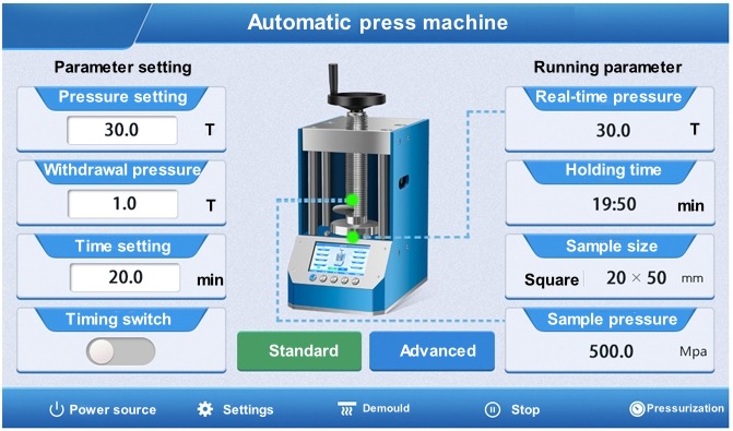 อินเทอร์เฟซมาตรฐาน:สามารถตั้งค่าพารามิเตอร์ต่างๆ ได้ในอินเทอร์เฟซนี้ทีละรายการ เช่น แรงดัน การถอดแบบ เวลา ขนาดตัวอย่าง ฯลฯ