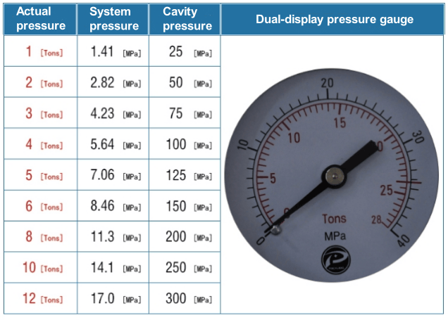 ช่วงแรงดัน | 0- 12T(0-17 เมกะปาสคาล) |