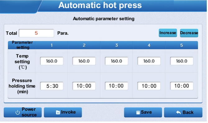 การตั้งค่าโปรแกรม:สามารถตั้งค่าขั้นตอนการกดหลายขั้นตอนและระยะเวลาการคงแรงดันได้