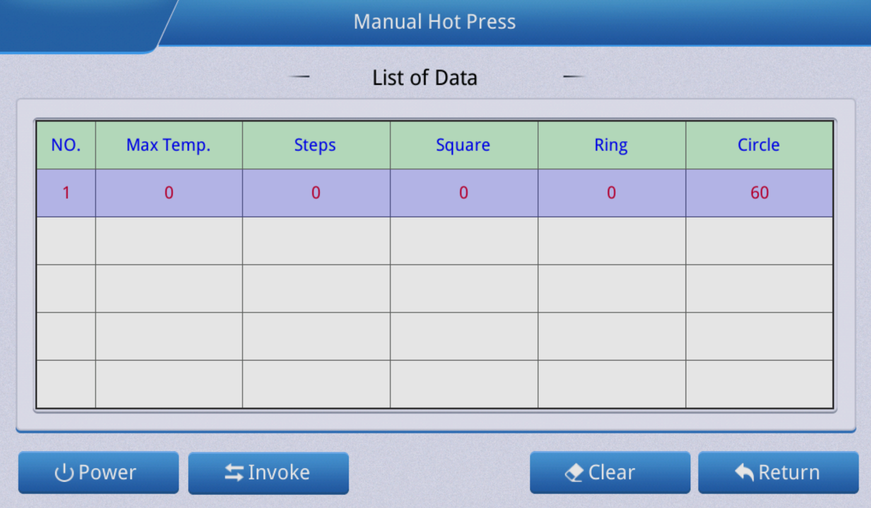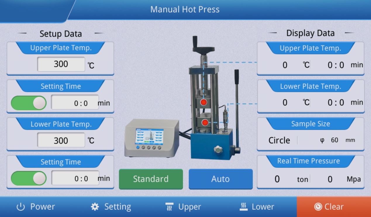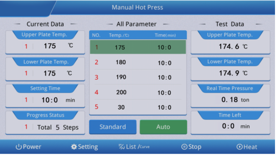 อินเทอร์เฟซมาตรฐาน: อุณหภูมิความร้อนและเวลาอุณหภูมิคงที่ของแผ่นด้านบนและด้านล่างสามารถตั้งค่าแยกกันบนอินเทอร์เฟซได้