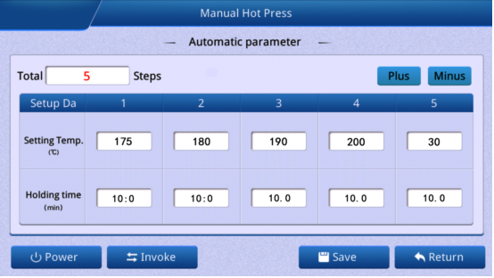การตั้งค่าโปรแกรม:สามารถตั้งค่าขั้นตอนการกดหลายขั้นตอนและระยะเวลาการคงแรงดันได้