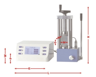 ไดอะแกรมมิติของเครื่องอัดเม็ดยาแบบผง |