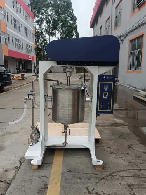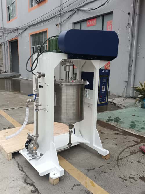 หลักการของเครื่องบดแบบลูกบอลกวนถูก ขับเคลื่อนโดยแกนหมุนเพื่อหมุนเครื่องกวนด้วยความเร็วสูง ทำให้ตัวกลางในการบดใน ถัง กวน เคลื่อนที่ไม่สม่ำเสมอ การเคลื่อนไหวที่ไม่เป็นระเบียบนี้ทำให้เกิดการชน การอัด การเสียดสี และการเฉือนของตัวกลางในการบด ทำให้วัสดุถูกบดและบดละเอียด เครื่องจักรทั้งหมดประกอบด้วย ถัง กวน อุปกรณ์กวน โครงและระบบควบคุมไฟฟ้า และอุปกรณ์การวางอื่นๆ เป็นหลัก (เช่น อุปกรณ์หมุนเวียนปั๊ม วัสดุอุปกรณ์แจ็คเก็ตระบายความร้อนด้วยน้ำ อุปกรณ์ควบคุมอุณหภูมิความร้อน ฯลฯ) องค์ประกอบที่เหมาะอย่างยิ่งสำหรับการทดสอบขนาดเล็ก การทดสอบนำร่อง การบดแบบเปียกปริมาณมาก ประสิทธิภาพการบดสูง ขนาดอนุภาคการบดเล็ก การบดแบบแห้งเหมาะสำหรับลักษณะเฉพาะบางประการของวัสดุ เช่น วัสดุต้องมีการไหลในระดับหนึ่ง ไม่ชุบง่าย ผนังด้านล่างเหนียว สามารถบรรลุข้อกำหนดพารามิเตอร์กระบวนการที่หลากหลายได้ดี