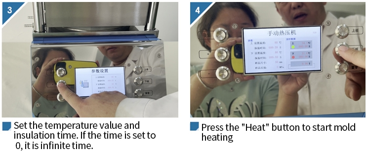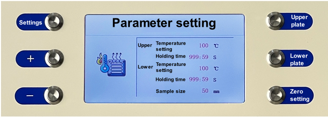 กดปุ่ม "Lower plate" บนอินเทอร์เฟซการใช้งาน หลังจากแผ่นทำความร้อนด้านล่างเริ่มทำความร้อนจนถึงอุณหภูมิที่ตั้งไว้ ตัวจับเวลาจะเริ่มบันทึกเวลาและรักษาอุณหภูมิให้คงที่ เมื่อหมดเวลา ให้หยุดทำความร้อน หรือกดปุ่ม "Lower plate" อีกครั้งเพื่อหยุดทำความร้อนแผ่นทำความร้อนด้านล่าง ในระหว่างกระบวนการทำความร้อน ปุ่มตั้งค่าทั้งหมดจะใช้งานไม่ได้