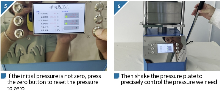 หากตัวอย่างไม่ได้สัมผัสกัน แต่อุปกรณ์แสดงแรงดัน อาจเป็นเพราะน้ำหนักของแผ่นทำความร้อน กดปุ่ม "ศูนย์" เพื่อล้างแรงดัน เพื่อให้ตัวอย่างมีความแม่นยำมากขึ้น