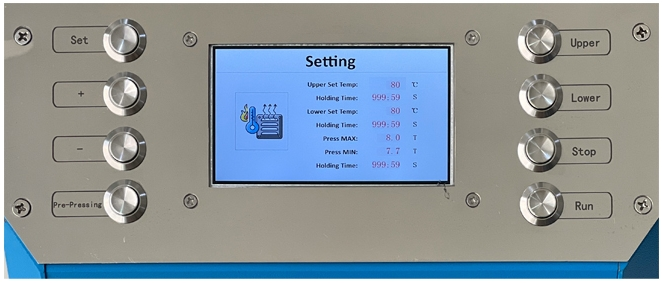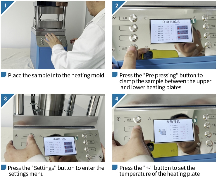 กดปุ่ม "Lower plate" บนอินเทอร์เฟซการใช้งาน หลังจากแผ่นทำความร้อนด้านล่างเริ่มทำความร้อนจนถึงอุณหภูมิที่ตั้งไว้ ตัวจับเวลาจะเริ่มบันทึกเวลาและรักษาอุณหภูมิให้คงที่ เมื่อหมดเวลา ให้หยุดทำความร้อน หรือกดปุ่ม "Lower plate" อีกครั้งเพื่อหยุดทำความร้อนแผ่นทำความร้อนด้านล่าง ในระหว่างกระบวนการทำความร้อน ปุ่มตั้งค่าทั้งหมดจะใช้งานไม่ได้