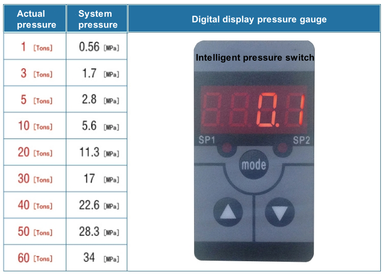 ช่วงแรงดัน | 0- 60 ตัน (0- 33 เมกะปาสคาล) |