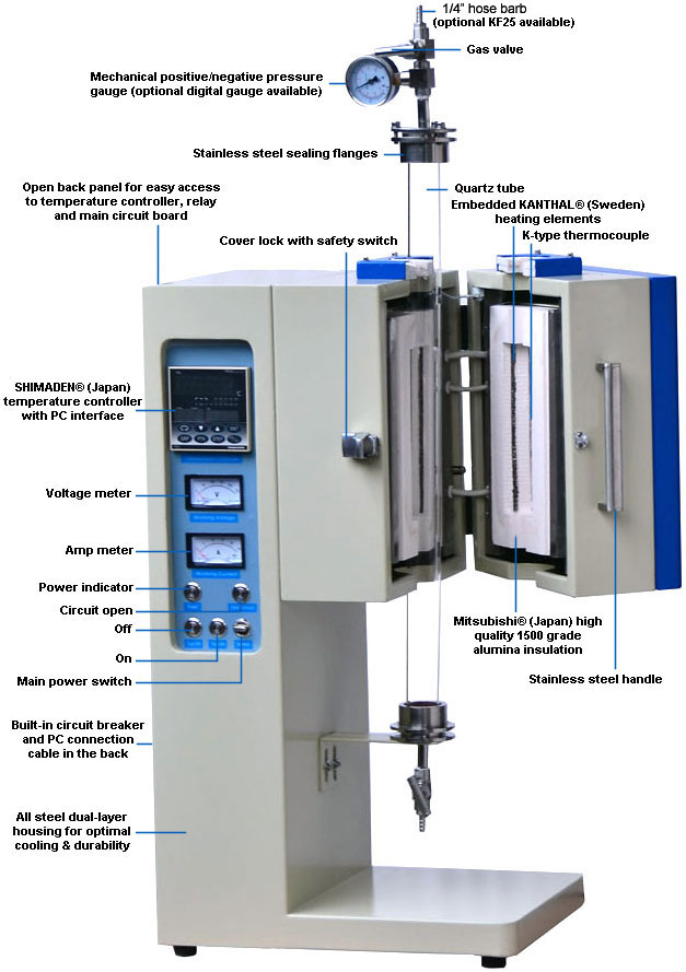 5 วันเตาเผาแบบท่อแนวตั้งอุณหภูมิสูง 1500 องศาเซลเซียสในห้องปฏิบัติการ