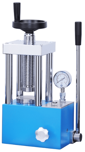 5 วันเครื่องกดไฮดรอลิกแบบใช้มือสี่เสา Lab Precise 15T พร้อมเส้นผ่านศูนย์กลางโต๊ะทำงาน 90 มม.