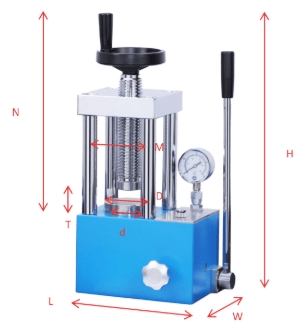 แผนผังแสดงขนาดของเครื่องอัดผง |