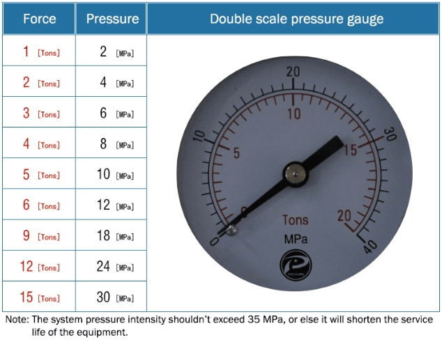 เกจวัดแรงดัน | จอแสดงผลแบบสองมาตราส่วนของความดันและความเข้มข้น |