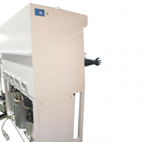 5 วันกล่องถุงมือสูญญากาศแบบด้านเดียวสำหรับห้องปฏิบัติการ (1500×750 มม.) สามถุงมือพร้อมระบบฟอก H2O และ O2