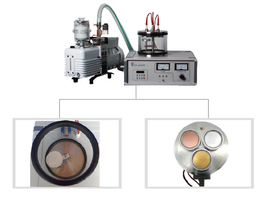 5 วันเครื่องเคลือบไอออนแบบสปัตเตอร์ไอออนสามเป้าหมายในห้องปฏิบัติการพร้อมตัวควบคุมอัตราการไหลของก๊าซ